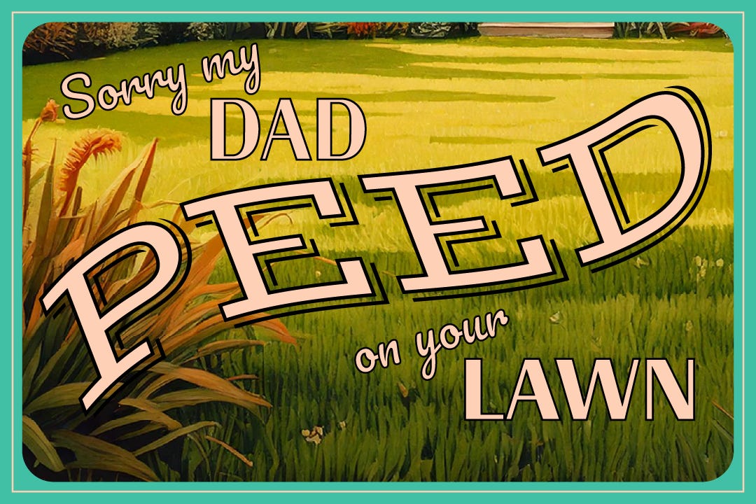 He shuts the door and I hustle back to my car and drive home, thinking the whole time: “I really hope my dad pees on that guy’s lawn again.”
