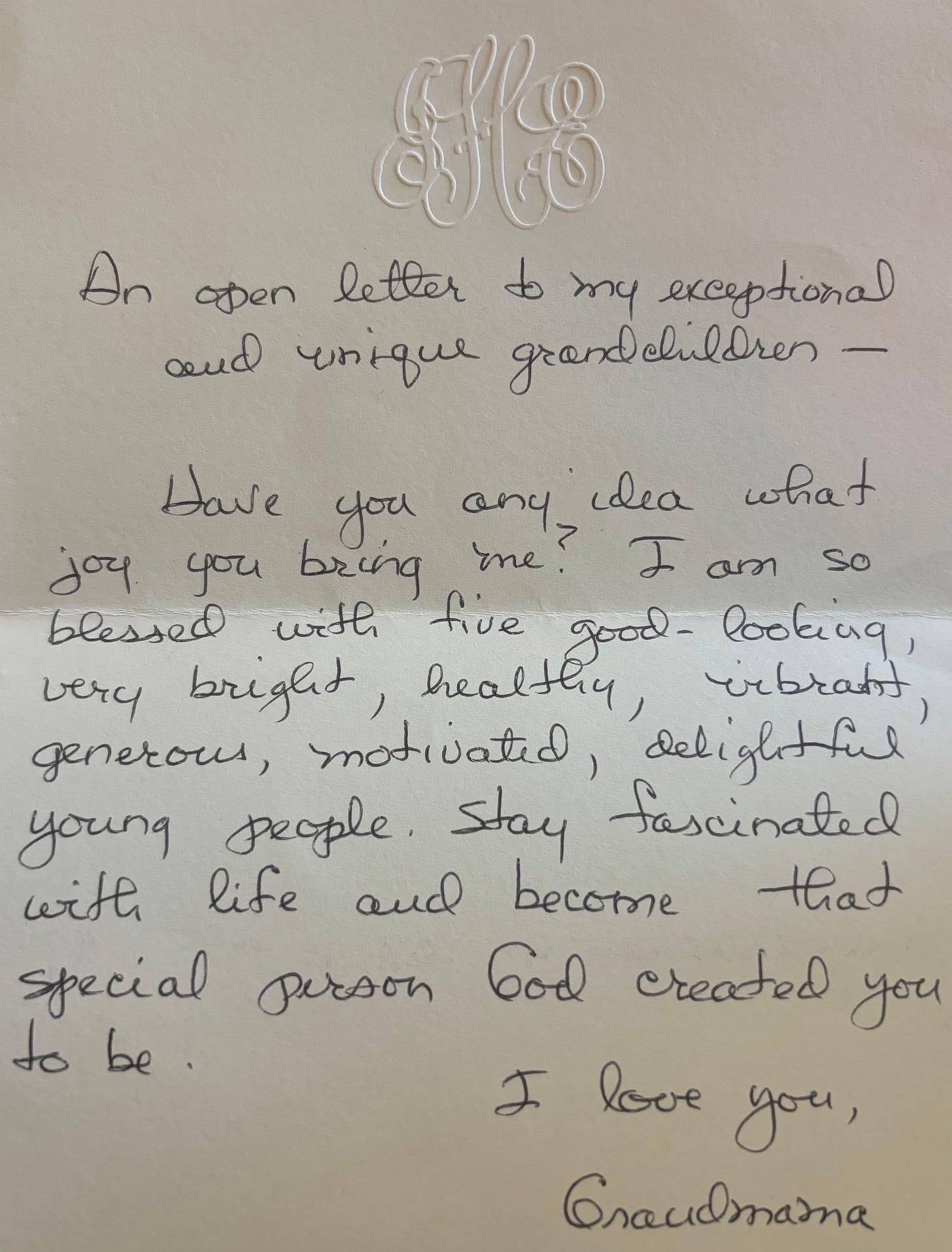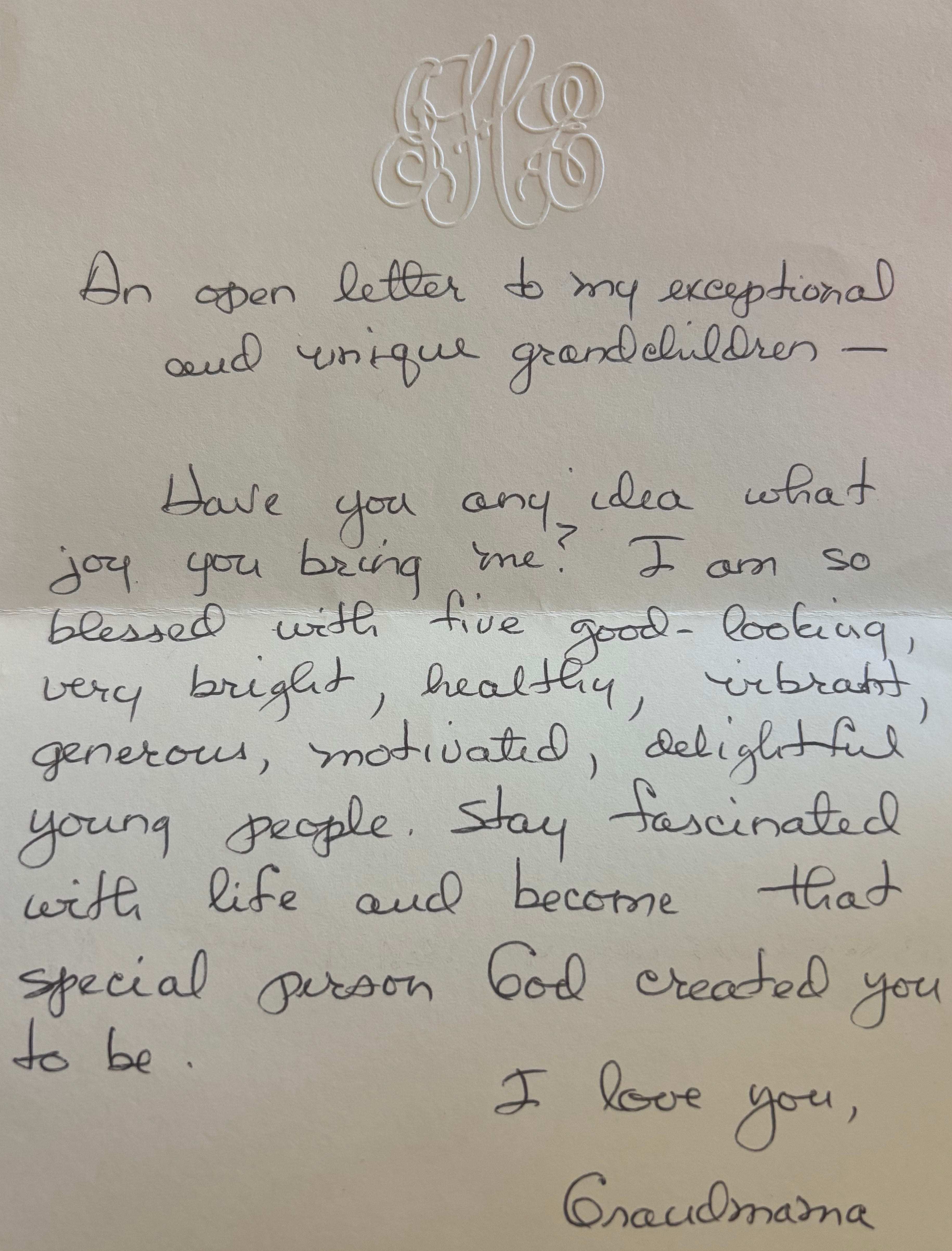 In the introduction to the episode, I mention a note my own maternal grandmother wrote me that I found recently. Here it is: