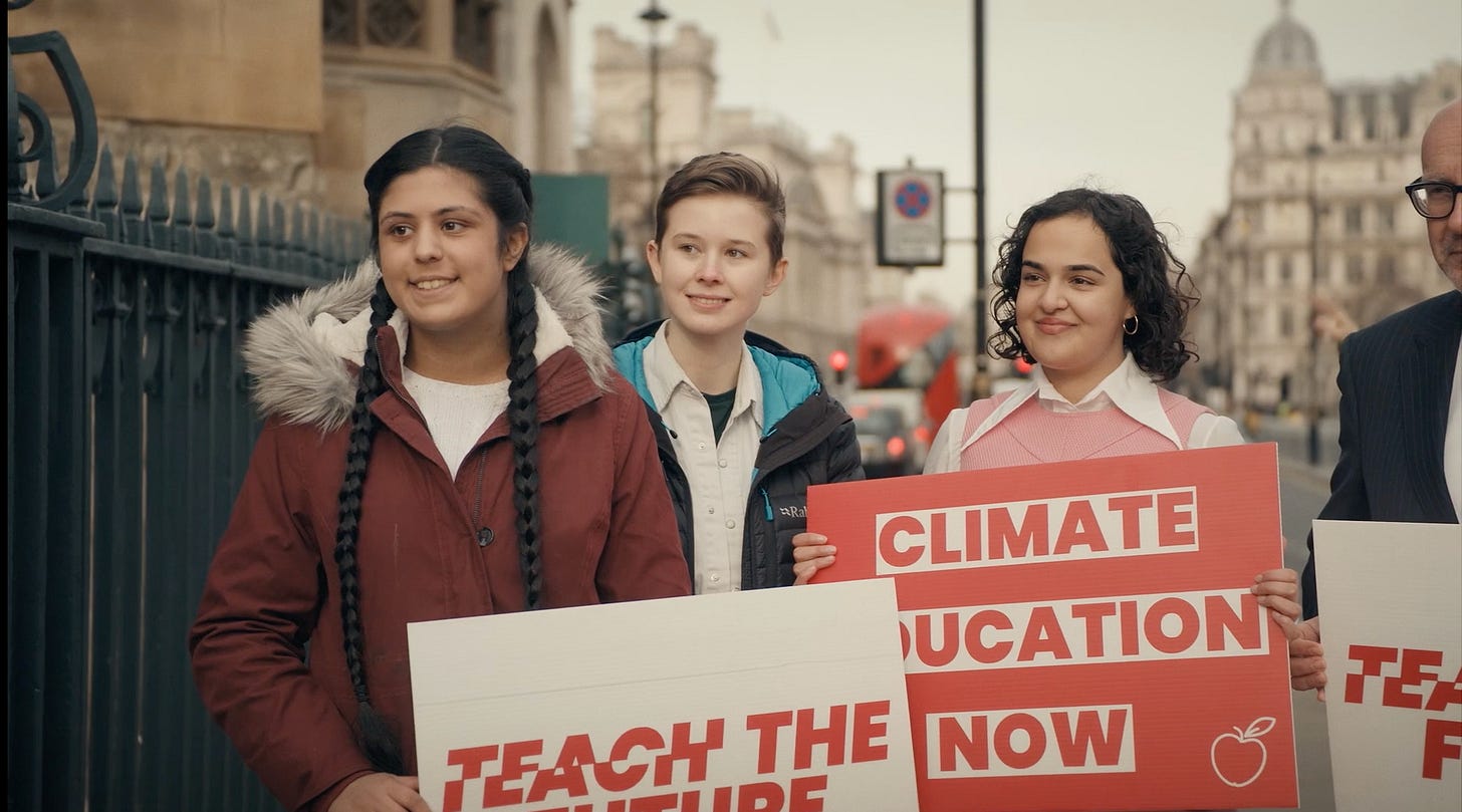 The final film in the series is filled with examples of people who asked this question of themselves and found different answers. Some of them agitate for change within their workplaces. The story of Interface Carpet is particularly moving if you’ve never heard it. Some of them have become activists—one doctor created an advocacy organization designed to make sure that every medical professional in California understands the intersection between climate change and health outcomes, particularly for the most marginalized. Every year 350,000 people’s lives are cut short because of pollution. Some of them are agitating for policy, like the young people in England who got a bill introduced that would ensure every kid in their country gets educated on climate change.